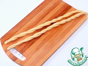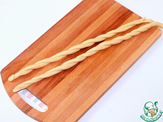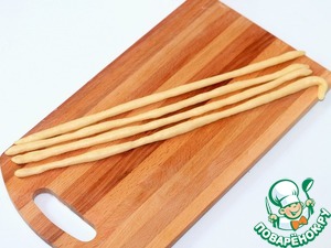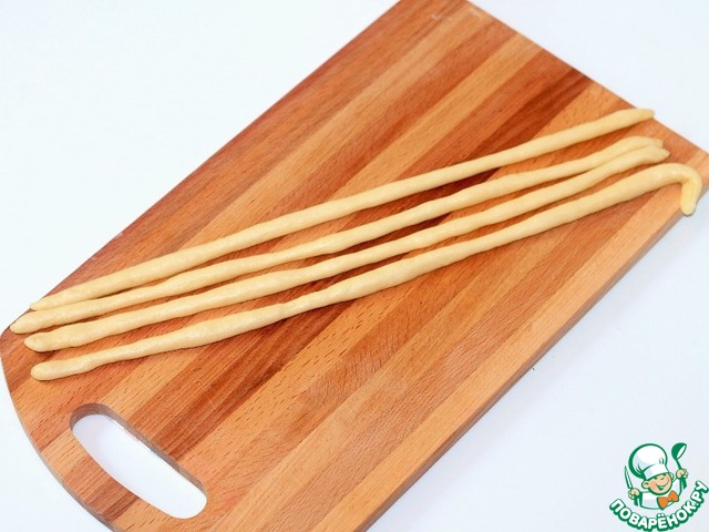 15. Вторую часть теста делим на 4 части и раскатываем по длине.