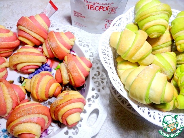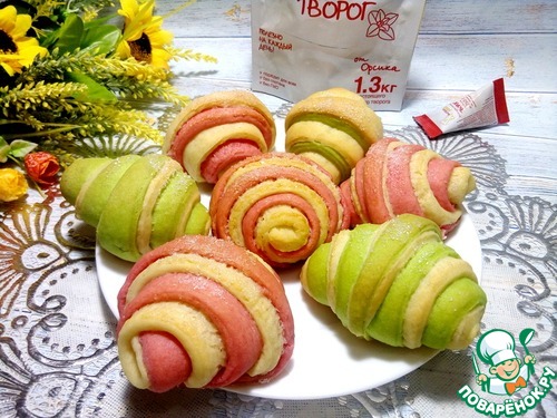 Предлагаю вам приготовить вот такие красивые двухцветные рогалики из очень вкусного, воздушного, творожно -дрожжевого теста. А нежный творог для этих рогаликов, будем готовить из закваски от Orsik