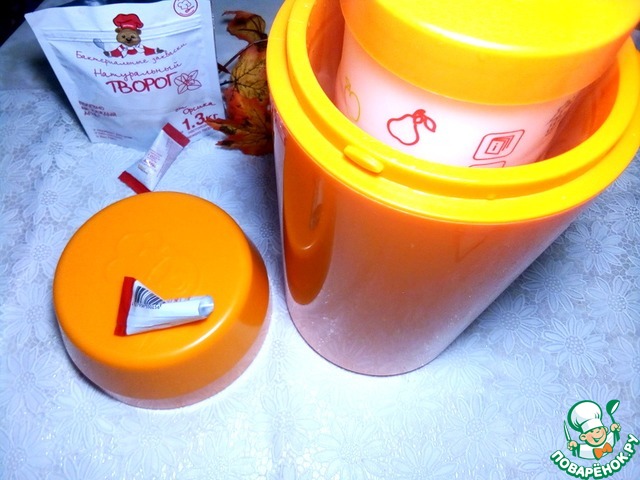Поставить стакан в йогуртницу-термос, налить кипяток, закрыть крышкой и оставить на 6-10 часов. В теплом месте, закваска для творога готова гораздо раньше.