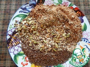 Поджарить семена подсолнечника, тыквы и кунжут. Семена льна жарить не нужно.
