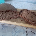 Уже в процессе замеса был очень интересный аромат теста. Готовый же хлебушек восхитил своим цветом, очень похож на ржано-пшеничный, нарезается очень хорошо, тонко, явного запаха и вкуса какао нет, его не угадаешь, есть такой своеобразный очень интересный привкус и долгое послевкусие. Но аромата пажитника мне не хватило, видимо, в прошлые разы я с горкой ложку зачерпывала, а тут что-то пожадничала, или у меня пажитник уже староватый, очень давно привозила из поездки, у нас гранулированного не найти.