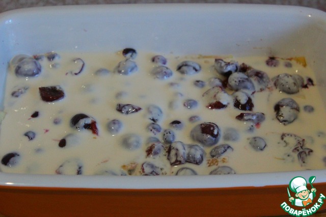 Ряженку взбить с крахмалом и вылить на ягоды.