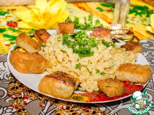 Пару лет назад в Times Of India был опубликован рецепт хлебного бирияни, что мне очень глянулся. Но, как и обычно, индийский колоритный рецепт столкнулся с суровой российской реальностью-многие ингрединеты было просто не найти. А ручки чесались попробовать! Пришлось сначала переделывать рецепт под реалии жизни, потом под свой вкус. В итоге получился шикарный кисло-сладкий бирияни с хрустящими хлебцами. Сочетание вкусов и ароматов яркое и многогранное как сама Индия.