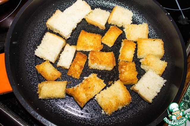 В сковороду наливаем масло и обжариваем хлебцы до хрустящей корочки.