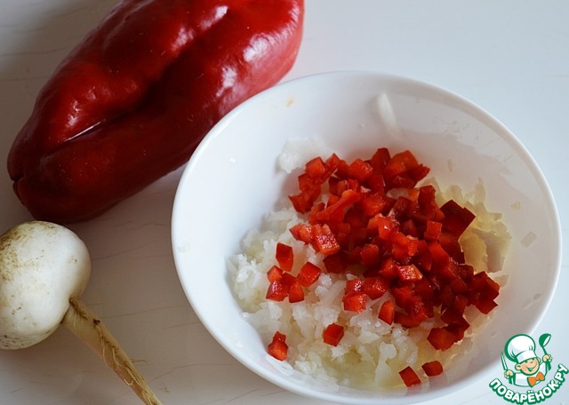 Сладкий перец очистить от семян и перегородок, нарезать мелкими кубикам, добавить к редьке.