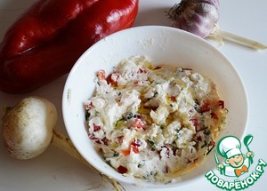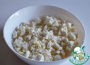 Смешать полученную массу с творогом, добавить масло, перемешать.