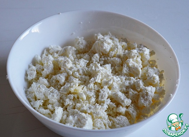 Для намазки нам нужен творог. Его приготовим из молока с добавлением бактериальной закваски ТМ Oursson. Для этого вскипятим 1 л молока и остудим его до комнатной температуры. Затем добавим бактериальную закваску, тщательно перемешаем и поместим в специальный термос на 6-10 часов. По истечение времени достанем емкость из термоса и увидим плотную массу. Ножом разрежем массу на кубики примерно 1,5*1,5 см. Нагреваем данную массу на водяной бане в течение 10-15 минут. Затем массу откинем на сложенную вдвое марлю и дадим стечь сыворотке. Массу можно положить под гнет или подвесить.