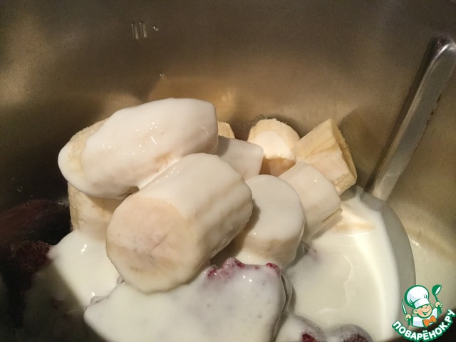 Бананы и налейте ряженку.