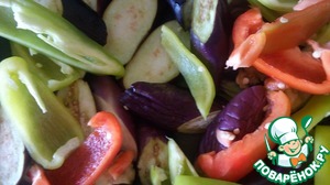 Моем овощи, из перца удаляем семена, все овощи режем на крупные куски, баклажаны я не чистила
