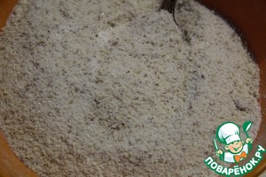 Миндаль перемолоть в муку (можно взять и готовую муку) и перемешать с пшеничной мукой, сахаром и солью
