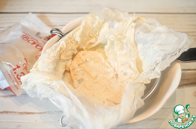 Откиньте на сито, застеленное марлей и оставьте на несколько часов.
