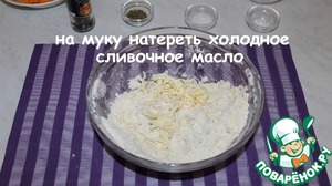 На муку натереть холодное сливочное масло.