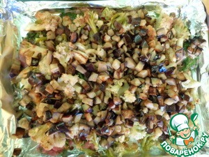 На цветную капусту разложить жаренные баклажаны.