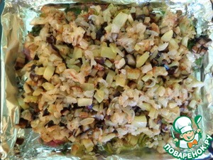 Далее равномерно распределить жареный лук.