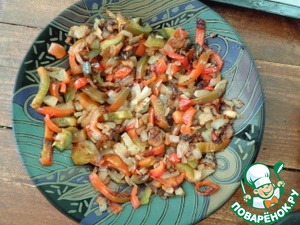 Очистить и пожарить репчатый лук и сладкий перец в течении 7 минут. Посолить по вкусу. Если Вы не воспринимаете жареный лук, его можно пропустить.