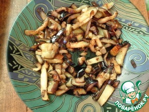 Баклажан порезать соломкой и обжарить в течении 7 минут. Посолить по вкусу.