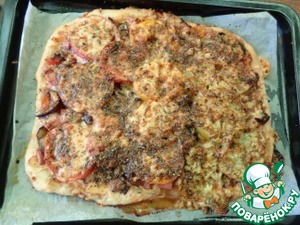 Домашняя пицца никак не ограничивает Вашей фантазии. Выбор за Вами какие продукты соединить в единое целое, предлагаю использовать два вида сырной продукции и овощи: перец, баклажан и конечно томаты.