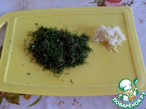 Измельчаем чеснок и зелень.