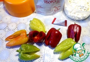 Для приготовления блюда, творог должен быть хорошо отжатым. Перец моем, разрезаем с острого конца к широкому не до конца и чайной ложкой вынимаем семянную коробочку. Красиво для этого блюда взять разноцветный перец и немного подвявший, тогда он легко чистится и не лопается. Я специально для этого блюда его на солнышке подержала. Ну а там, как получится.
