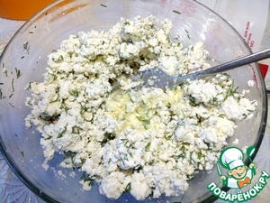Все тщательно перемешиваем, пробуем на свой вкус. Яйцо взбить вилкой и добавлять в начинку по столовой ложке, мне хватило 1,5 ст. л. Остальное яйцо пойдет для смазки.