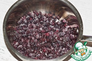 Для конфитюра замороженную чернику выложить в сотейник. Добавить половину сахара. Остальной сахар смешать с пектином. Сотейник поставить на средний огонь, помешивая нагреть до 40С. Затем мешая всыпать пектин смешанный с сахаром. Довести массу до кипения и проварить 2 минуты. Остудить.