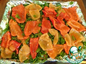 Рецепт «Скумбрия, запеченная с перцем и помидорами»: