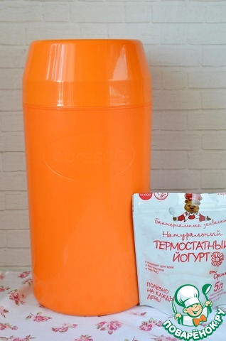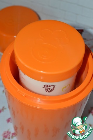 В специальный термос-йогуртницу налить до отметки горячей воды.