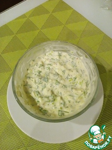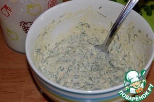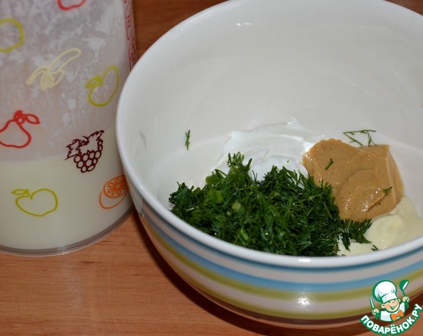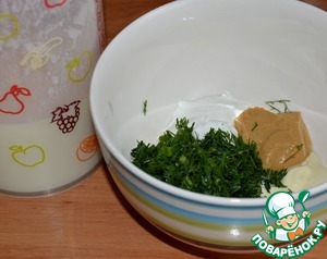 Соединить йогурт, майонез, горчицу и измельченную зелень.
