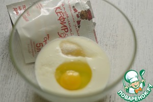 В чашке смешать кефир, яйцо, сахар и соль. -