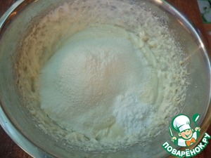 Добавить к маслянно - яичной смеси разрыхлитель, ванилин, соль, цедру лимона, муку.