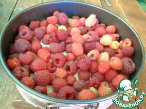 На тесто равномерным слоем выложить малину. Малину в тесто не погружать.