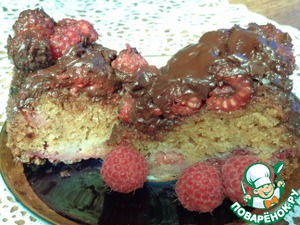 Когда шоколад растопится - перемешать и залить малину на корже, промазать бока.