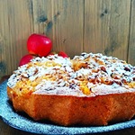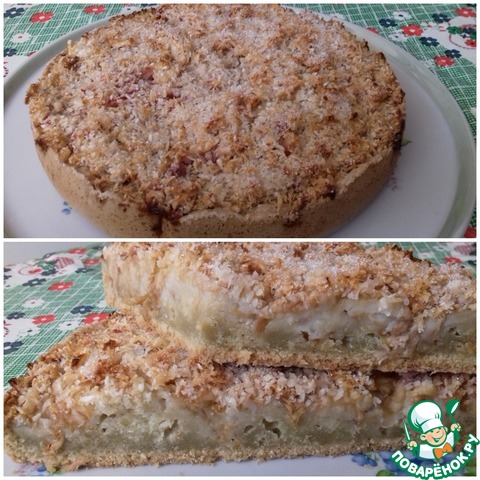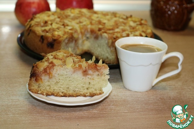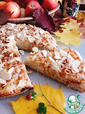 Яблок взяла больше, наверное грамм 800. Сделала посыпку из карамелизированных грецких орехов и посыпала пирог за 10-15 минут до окончания выпекания. Восторг, восхищение и благодарность!!!