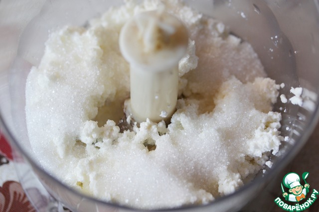 Взбить творог с сахаром. Количество сахара зависит от того, насколько кислый творог.