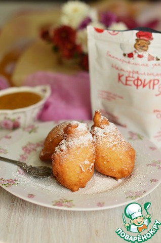 Вынуть пончики шумовкой и посыпать сахарной пудрой.