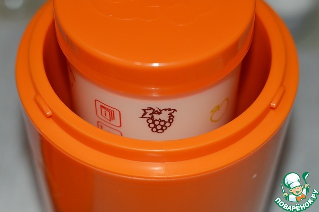 Емкость закрыть крышкой. Поставить в термос-йогуртницу на 6-10 часов для сквашивания продукта. Затем убрать в холодильник минимум на 2 часа. Наш кефир готов.