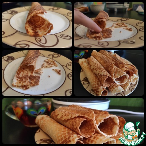 Рецепт «Вафельные рожки с кремом "Пломбир"»: