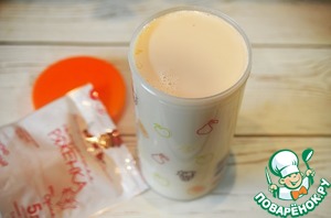 Для блинов нам понадобится ряженка. Ряженку приготовим сами, используя термос-йогуртницу и закваску от Oursson. В чашу термоса засыпьте пакетик закваски для ряженки, влейте топленое молоко комнатной температуры и хорошо перемешайте.