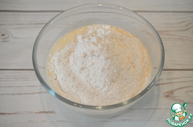 Добавьте муку и перемешайте, чтобы не было комочков.