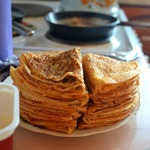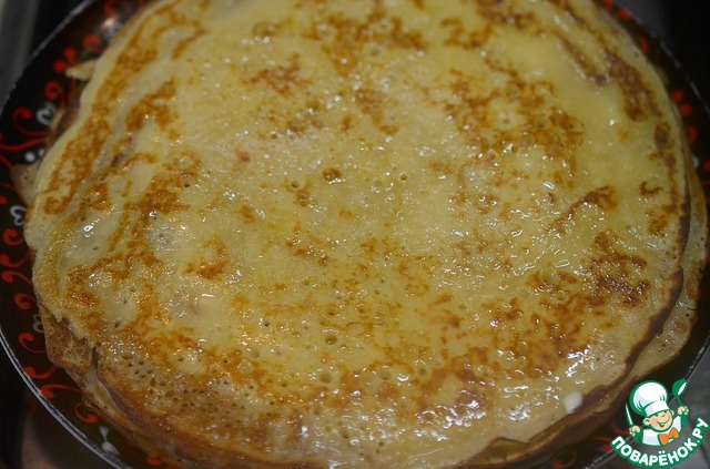 Жарьте блины, смазывая сковороду маслом и каждый блин сливочным маслом.