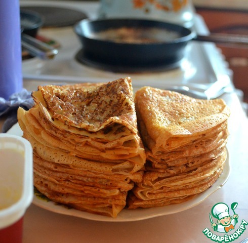 Фото блинов не прикрепляю, не успела, тарелка уже пуста, мои мужички рецепт оценили