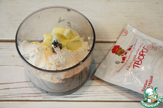 В чашу блендера положите творог. Домашний творог сюда отлично подходит. Если же Вы используете магазинный творог, то лучше брать мягкий или обычный протереть через сито.