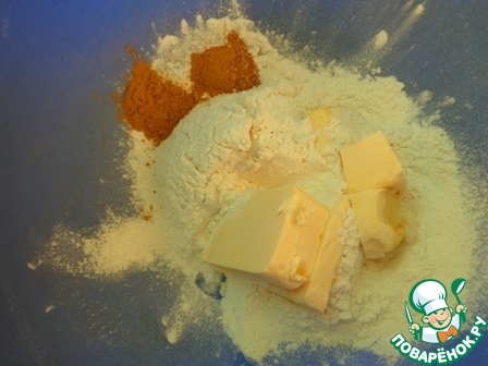Просеять муку, добавить карри и размягченное сливочное масло.