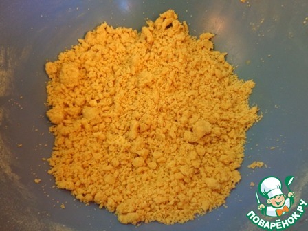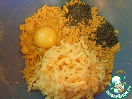 Соединить масляные крошки с маком, яйцом и нашинкованным сыром.