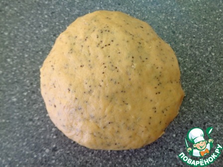 Тесто вымесить, сформировать в шар, поместить в целлофановый пакет и убрать в холодильник на 30 минут.