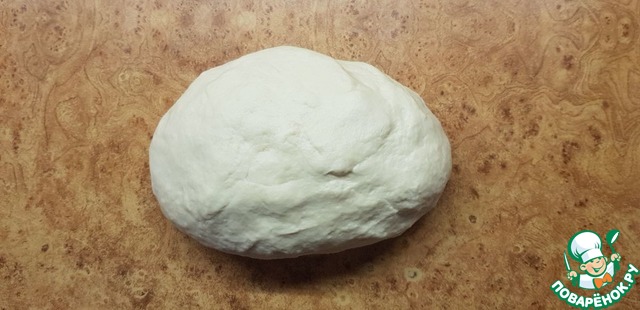 Собираем тесто. Муку больше не добавляем. Перемешиваем тесто на столе ещё 10 минут, чтобы тесто насытилось кислородом и не прилипало к рукам. Тесто должно стать эластичным.