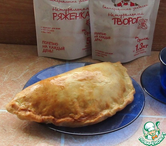 Накрываем лепешкой и защипнем. Можно смазать яйцом или сладкой водой, я смазала содовой водой.