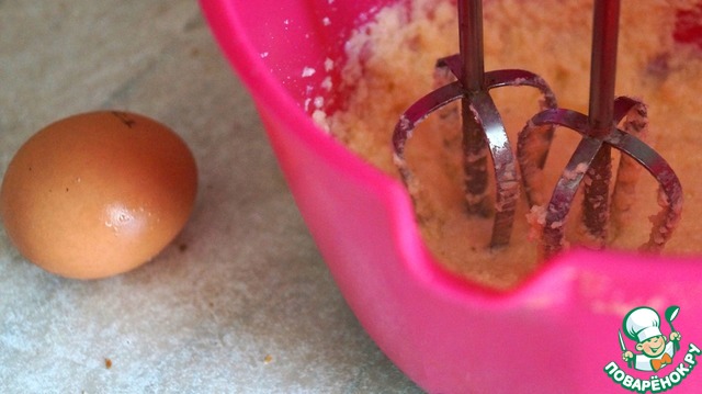 В глубокой миске для замешивания теста взбиваем сливочное масло с сахаром, потом по одному добавляем яйца и продолжаем взбивать.