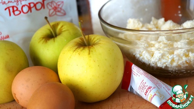 Ингредиенты для «Творожно-яблочный пирог с карамелью»:
