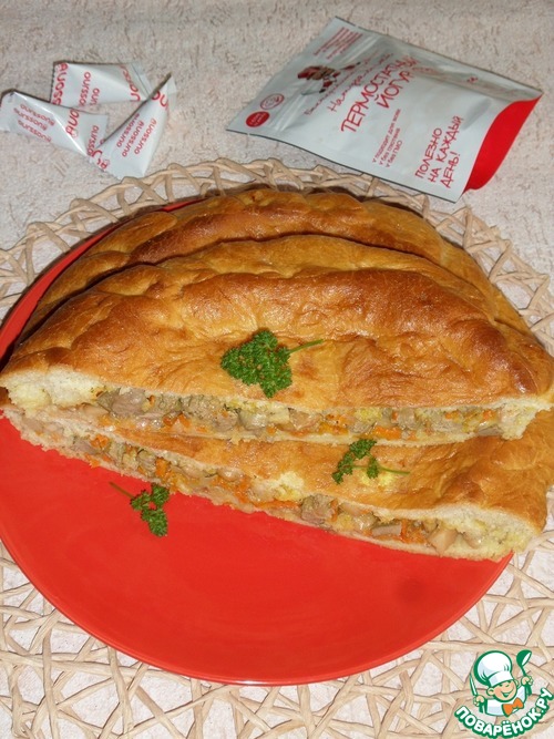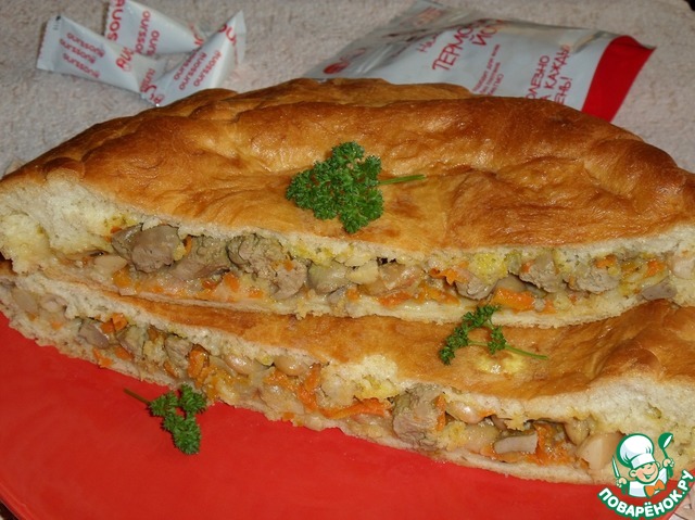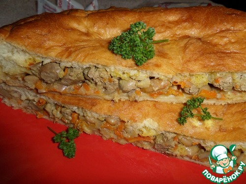 Пирог с куриной печенью и овощами